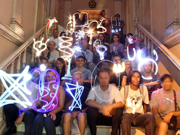 Separados em grupos, propus que se organizassem para criar um pequeno stop motion a partir das fotos em lightpainting.