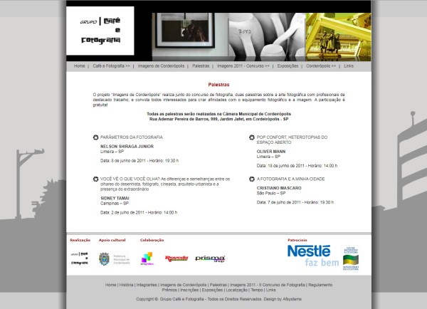 Fui convidado pelo grupo Café e Fotografia a integrar o coletivo e auxiliar na organização do concurso fotográfico Imagens de Cordeirópolis 2011.